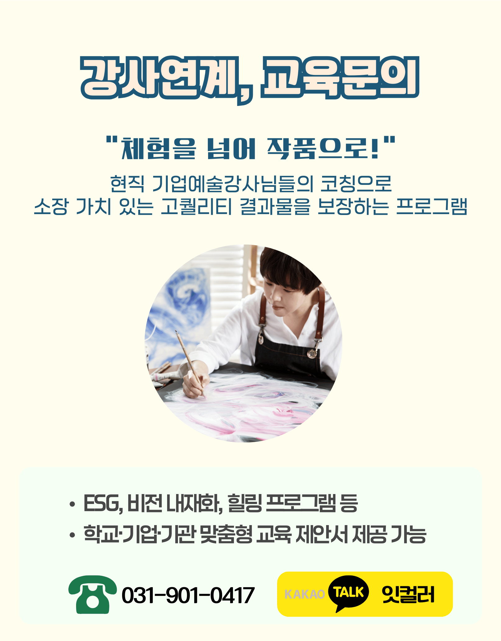 • 비전 내재화: 조직의 가치를 나만의 컬러로 시각화하는 차별화된 기업예술 교육